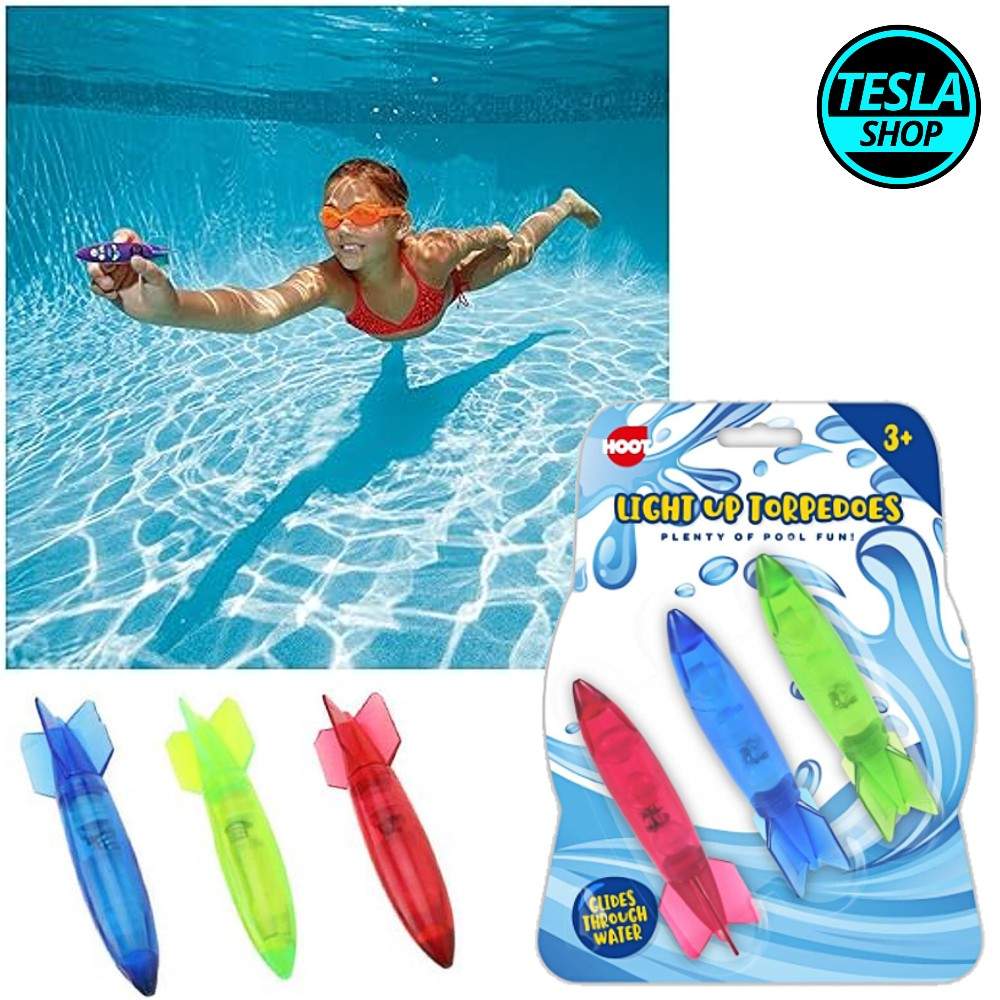 Paket od 3 zapečaćene igračke za ronjenje dizajnirane za ljubitelje vodenih sportova. Svaka jedinica sadrži 1 zapečaćenu igračku za ronjenje u obliku torpeda koja svetli kako bi poboljšala iskustvo podvodnog plivanja.