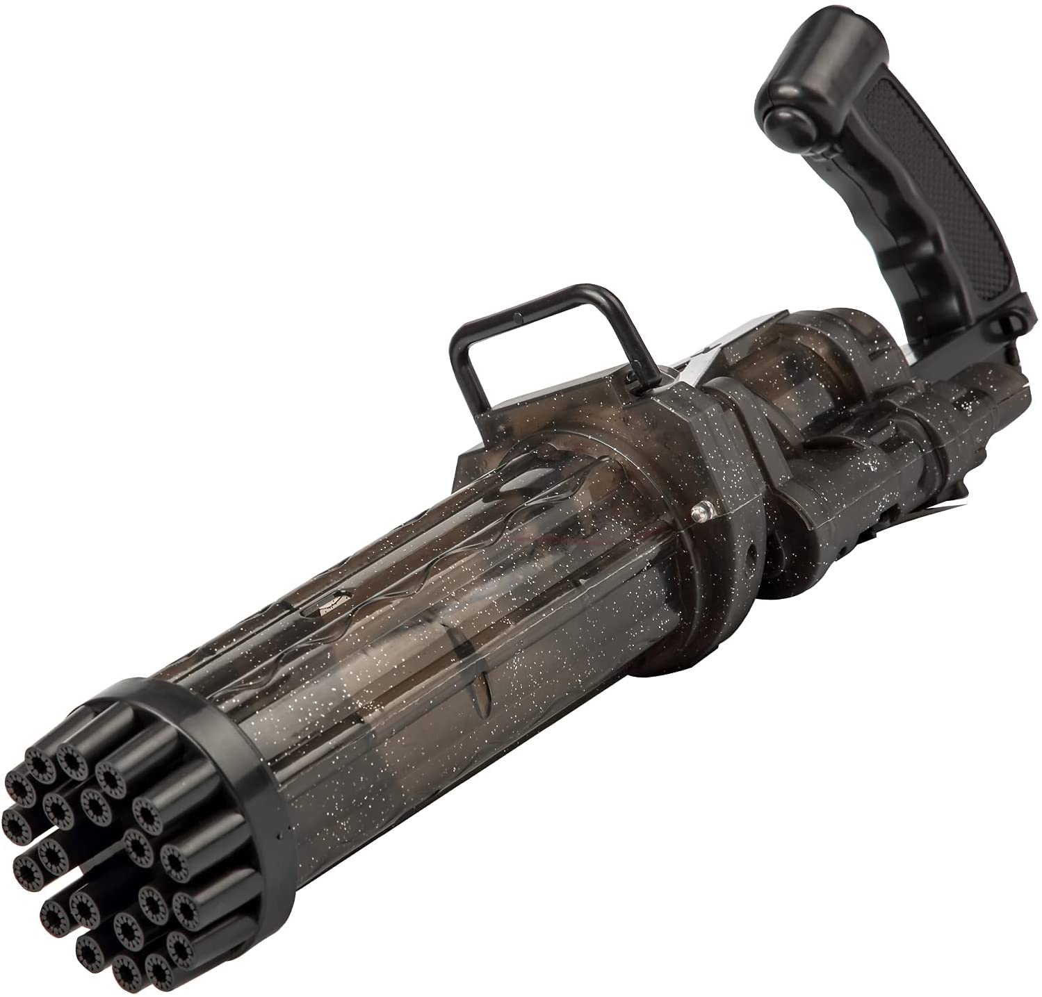 Pištolj za balončiće će u velikoj mjeri imitirati izgled mitraljeza Gatling kako bi djeci pružio realno iskustvo igranja. Potpuno bezopasna i edukativna igračka, koja djeci pokazuje da umjesto metaka, svako oružje treba da ispusti šarene balone.