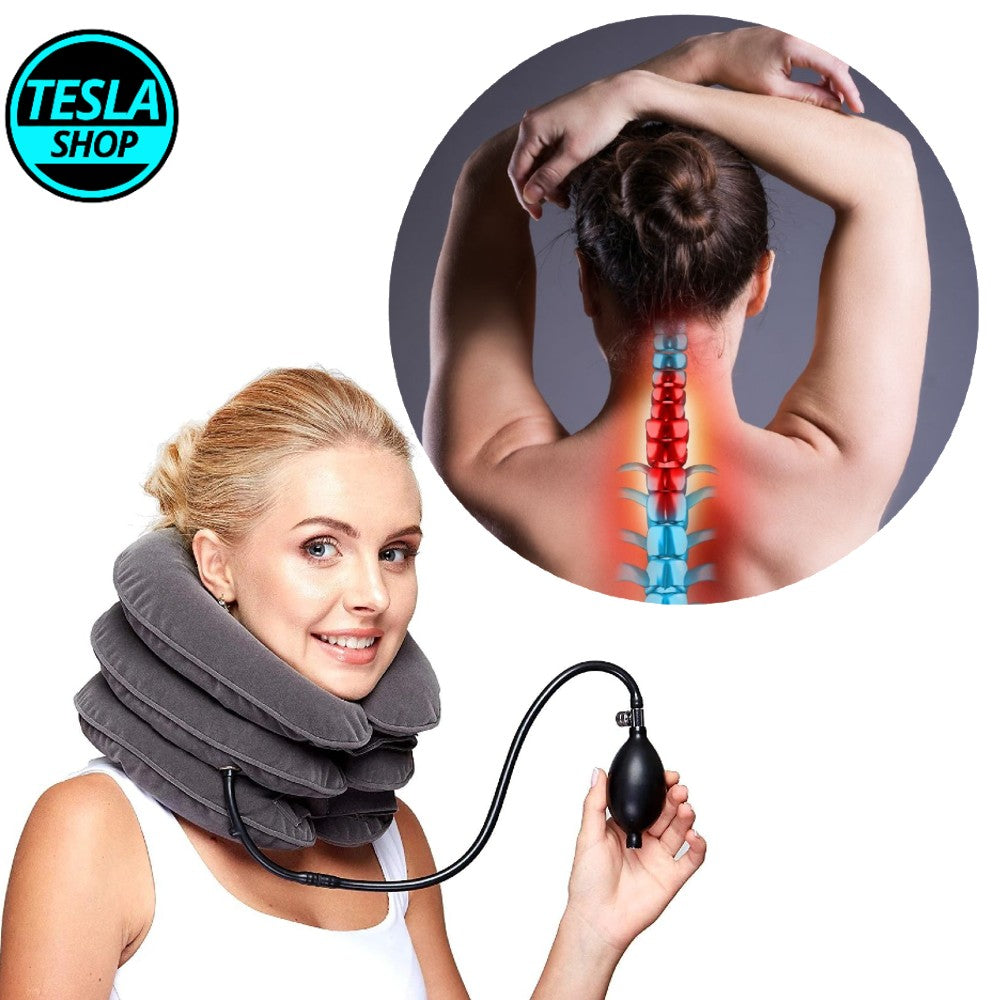 Ovaj vazdušni jastuk za trakciju kičme radi tako što Vam kada ga stavite „izduži“ vrat i tako razdvoji pršljenove kičme jedan od drugog. Time se pritisak ravnomerno raspodeli celom dužinom kičme.